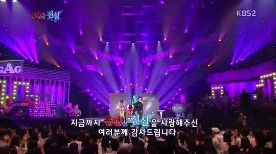 한편 '개콘 불편한 진실'은 지난 2011년 7월 첫 방송된 뒤 현재까지 사랑받아왔다. 특히 황현희는 마지막까지 꼿꼿함을 잃지 않아 눈길을 끌었다. 그는 "마지막 방송이라고 하면 '어우' 하는 불편한 진실"이라는 말을 남기며 단칼에 코너를 마감했다.