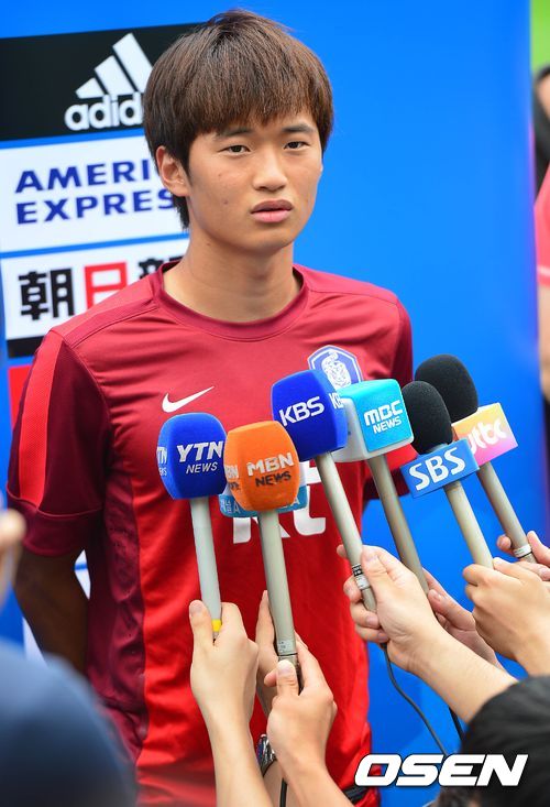 김진수가 훈련 시작을 앞두고 취재진의 질문에 답하고 있다.