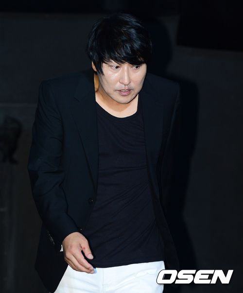 송강호가 간담회를 마치고 무대를 나서고 있다.