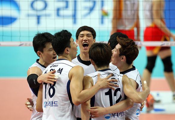 우리카드는 22일 안산 상록수체육관에서 열린 ‘2013 안산·우리카드 프로배구대회’ 조별예선 A조 KEPCO와의 경기에서 주축 선수들의 고른 활약 끝에 3-2 승리를 거뒀다. 2-1로 앞선 4세트 매치포인트를 잡고도 승부를 결정짓지 못해 우려를 모았으나 결국 강한 집중력과 투지로 공식전 첫 승리를 따냈다. 경기 후 선수들과 코칭스태프들의 얼굴에는 환한 웃음꽃이 피어올랐다.