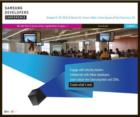 '삼성 개발자 회의(Samsung Developer Conference)'라고 이름 붙여진 삼성전자의 첫번째 개발자회의는 오는 10월 27일부터 29일까지 3일간 미국 샌프란시스코에 위치한 더 웨스틴 세인트 프랜시스 온 유니온 스퀘어 호텔 (The Westin St Francis on Union Square Hotel)에서 열릴 예정이다.