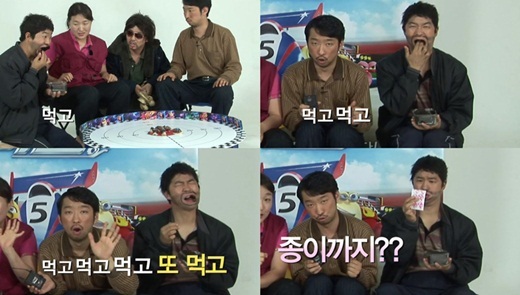특히 ‘개콘’에서 각티슈 김과 두루마리 김 등을 활용해 하정우를 능가하는 새로운 ‘먹방’ 신드롬을 만들어내고 있는 홍인규는 먹다먹다 종이까지 먹을 기세로 끊임없이 김을 먹어치워 폭풍 웃음을 자아냈다.
