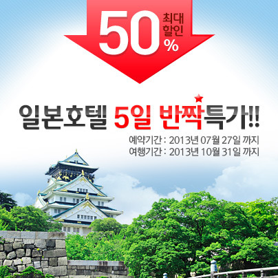 세계 최대 온라인 여행사 익스피디아(www.expedia.co.kr)가 23일부터 27일까지 5일간, 일본 주요 6개 도시 도쿄, 오사카, 교토, 오키나와, 삿포로, 후쿠오카의 호텔들을 최대 50% 할인하는 특가 프로모션을 진행한다.
