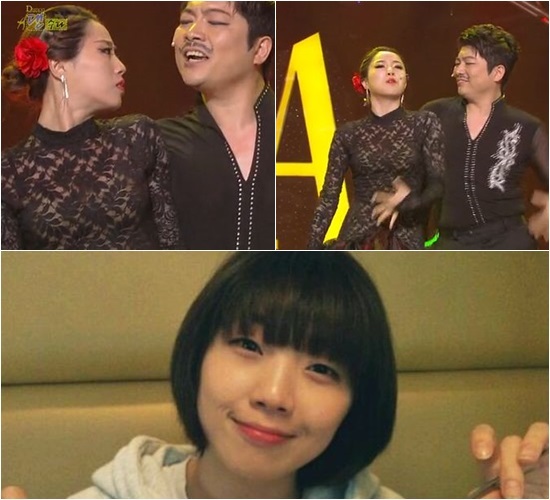 '댄수다'에서 허민은 몸에 달라붙는 시스루 드레스를 입고 빨간 꽃으로 멋을 낸 모습이다. 스포츠 댄스 커플로 등장하는 만큼 그의 섹시한 춤 솜씨도 이 코너의 포인트가 되고 있다.