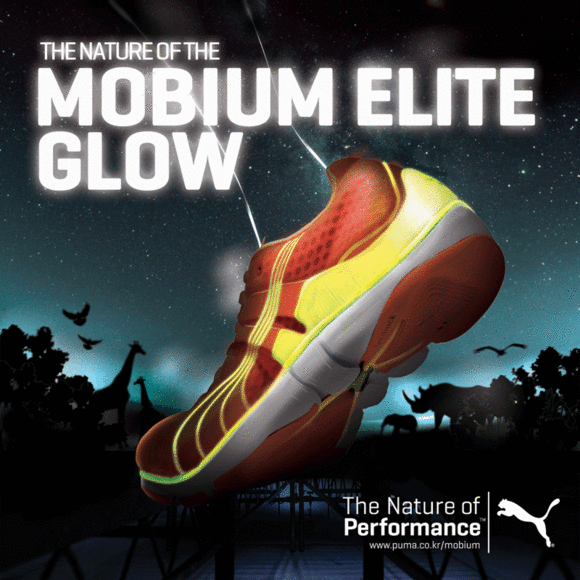 모비움 엘리트 글로우 러닝화는 어두운 환경에 적응하는 고양이 눈에서 아이디어를 얻어 밤에 러닝을 즐기는 나포츠족(나이트 스포츠)을 위해 빛을 반사하고 발광하는 야광 기능을 탑재한 것이 특징.