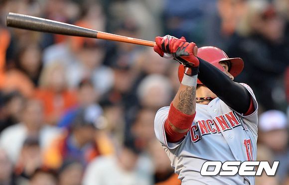 23일(한국시간) 미국 캘리포니아주 샌프란시스코에서 열린 2013 메이저리그 샌프란시스코 자이언츠와 신시내티 레즈의 경기, 2회초 1사에서 신시내티 추신수가 좌월 솔로 홈런을 치고 있다.