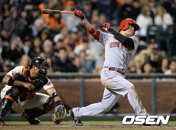 23일(한국시간) 미국 캘리포니아주 샌프란시스코에서 열린 2013 메이저리그 샌프란시스코 자이언츠와 신시내티 레즈의 경기, 5회초 2사 1루에서 신시내티 추신수가 삼진으로 물러나고 있다.