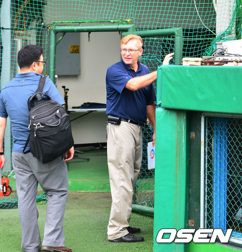 23일 오후 대구시민구장에서 2013 한국야쿠르트 세븐프로야구 삼성 라이온즈와 NC 다이노스의 경기가 열릴 예정인 가운데 스타디움 디자인(Stadium Design)과 필드 메인터넌스(Field Maintenance) 분야의 최고 전문가이자 MLB 공식 자문위원(MLB Official Consultant)인 Murray Cook(브릭맨 그룹 대표)이 대구구장을 점검하고 있다.