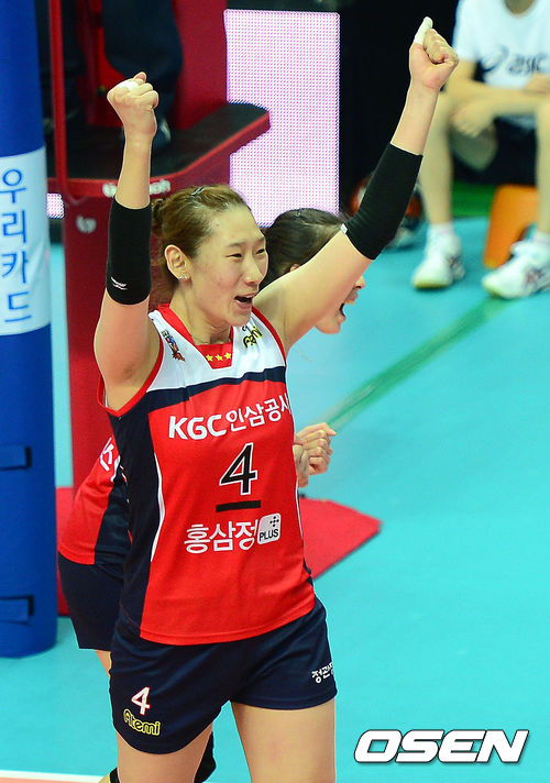 승리를 거둔 한국인삼공사 한수지가 기뻐하고 있다. /youngrae@osen.co.kr