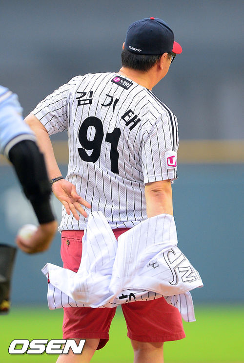 23일 오후 서울 잠실구장에서 열린 2013 한국야쿠르트 세븐프로야구 LG 트윈스와 KIA 타이거즈의 경기에 앞서 배우 박상면이 시구를 하고 있다.
