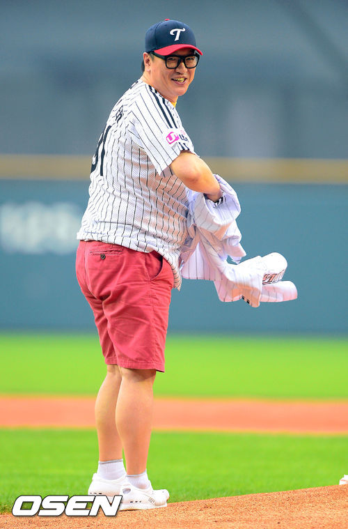 23일 오후 서울 잠실구장에서 열린 2013 한국야쿠르트 세븐프로야구 LG 트윈스와 KIA 타이거즈의 경기에 앞서 배우 박상면이 시구를 하고 있다.