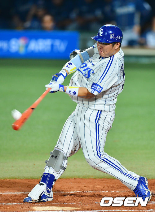 23일 오후 대구시민구장에서 열린 2013 한국야쿠르트 세븐프로야구 삼성 라이온즈와 NC 다이노스의 경기, 6회 무사 1루서 삼성 최형우가 NC 선발 찰리 쉬렉의 4구째를 공략해 135m 짜리 우월 투런 아치를 터트렸다. 시즌 17호째.