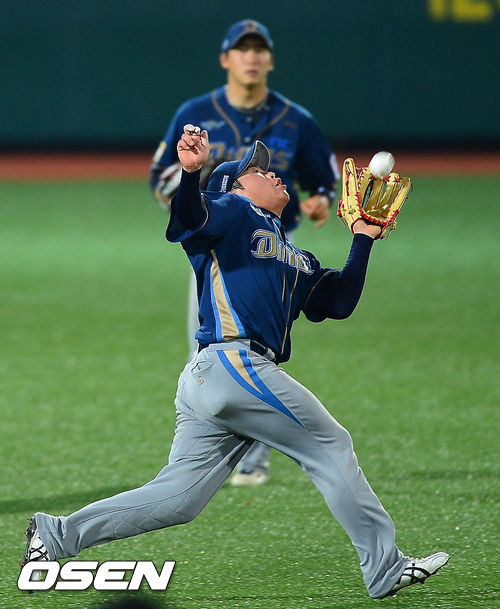 23일 오후 대구시민구장에서 열린 2013 한국야쿠르트 세븐프로야구 삼성 라이온즈와 NC 다이노스의 경기, 6회말 무사 주자 없는 상황에서 삼성 이승엽의 타구를 NC 좌익수 권희동이 잡아내고 있다.