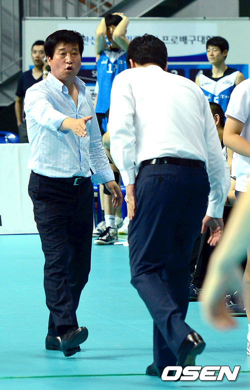 경기 종료 후 현대캐피탈 김호철 감독이 대한항공 김종민 감독과 악수를 나누고 있다. /youngrae@osen.co.kr