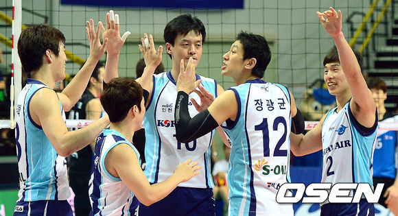 5세트 득점을 올린 대한항공 선수들이 기뻐하고 있다. /youngrae@osen.co.kr