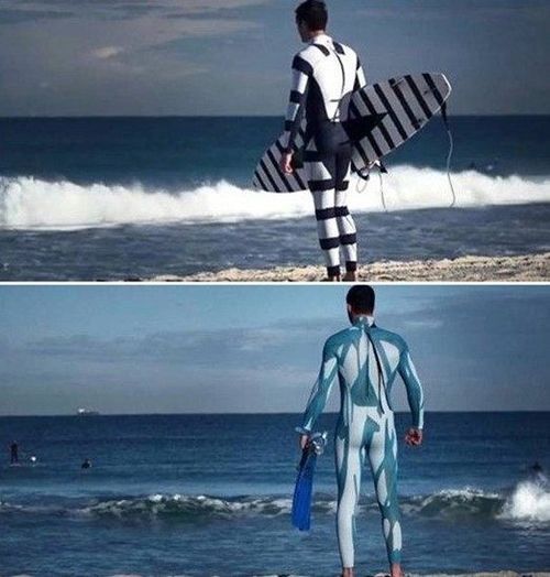 최근 호주 웨스턴오스트레일리아 대학교 연구팀은 '상어 걱정 없는 수영복'을 개발, 이를 공개했다. 이 수영복은 상어가 착시 현상을 일으켜 물과 사람을 구별할 수 없게 하는 기술로 만들어졌다.