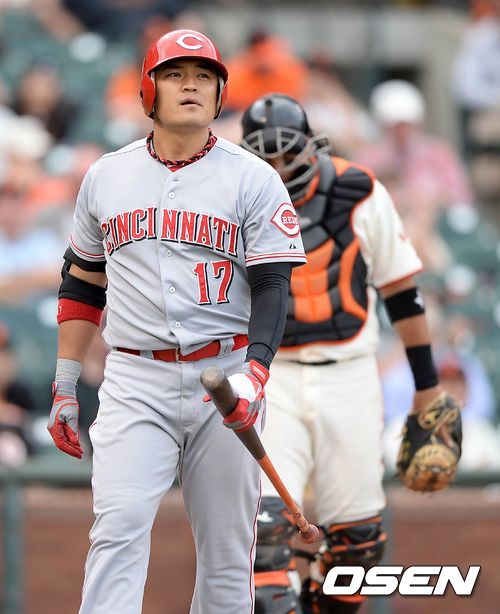 24일(한국시간) 미국 캘리포니아주 샌프란시스코에서 열린 2013 메이저리그 샌프란시스코 자이언츠와 신시내티 레즈의 경기, 6회초 무사에서 신시내티 추신수가 삼진으로 물러나고 있다.