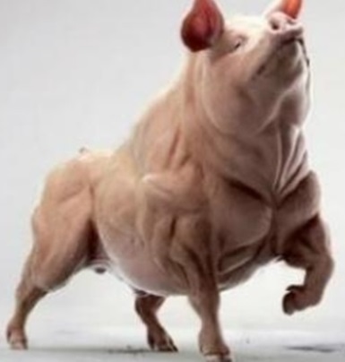 이 사진은 사실 광고회사가 자신들의 상품을 홍보하기 위해 만든 것이라고 알려졌다. 바로 기름기를 제거하기 위한 주방세제를 광고하기 위해 살을 쪽 뺀 ‘보디 빌더 돼지’ 이미지를 차용한 것이다.