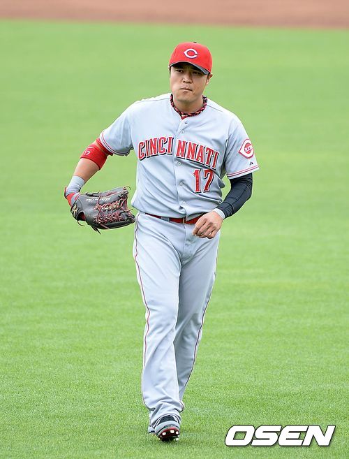 24일(한국시간) 미국 캘리포니아주 샌프란시스코에서 열린 2013 메이저리그 샌프란시스코 자이언츠와 신시내티 레즈의 경기, 1회말 신시내티 추신수가 수비 위치로 이동하고 있다.
