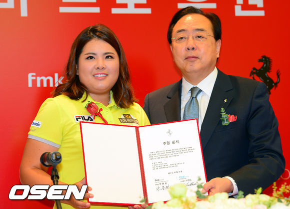 '세계 랭킹1위' 골프 여제 박인비(25 KB금융그룹)는 이날 조인식을 갖고 페라리 플래그쉽 GT 차량인 FF(Ferrari Four)를 1년 동안 지원받게 된다.