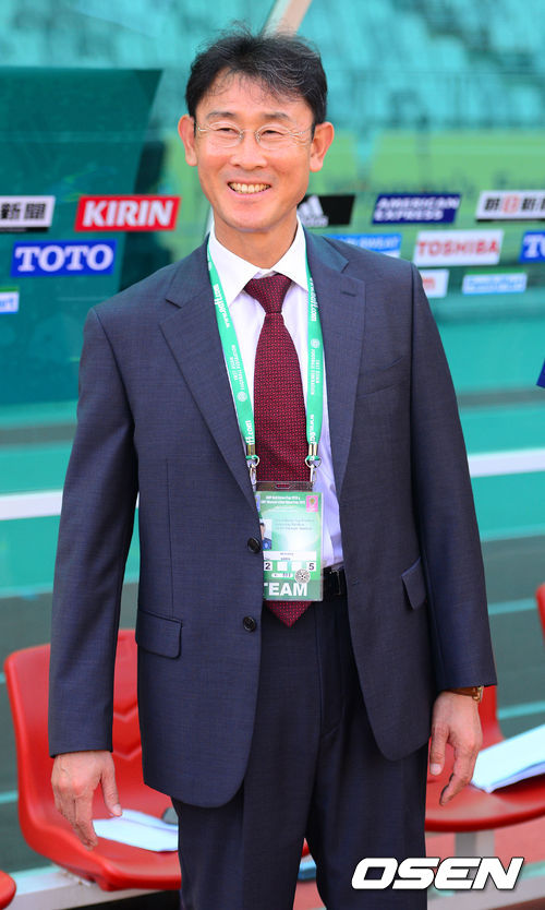 24일 오후 경기도 화성종합경기타운에서 열린 2013 동아시안컵 축구선수권대회 여자부 2차전 한국과 중국의 경기에 앞서 윤덕여 감독이 미소 짓고 있다.