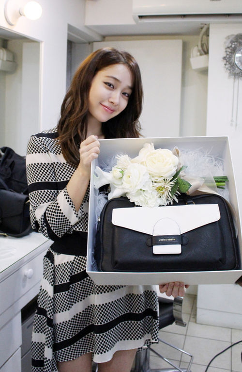 사진 속에서 이민정은 화이트 박스 안에 선물로 받은 핸드백을 들고 환하게 웃고 있다. 이는 빈치스벤치의 크리에이티브 디렉터인 빈센트 뒤 사르텔이 뮤즈 이민정의 결혼을 축하하기 위해 깜짝 이벤트로 선물한 핸드백.