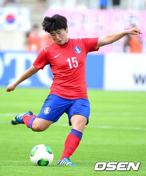 24일 오후 경기도 화성종합경기타운에서 열린 2013 동아시안컵 축구선수권대회 여자부 2차전 한국과 중국의 경기, 전반 한국 김나래가 중거리슛을 시도하고 있다.