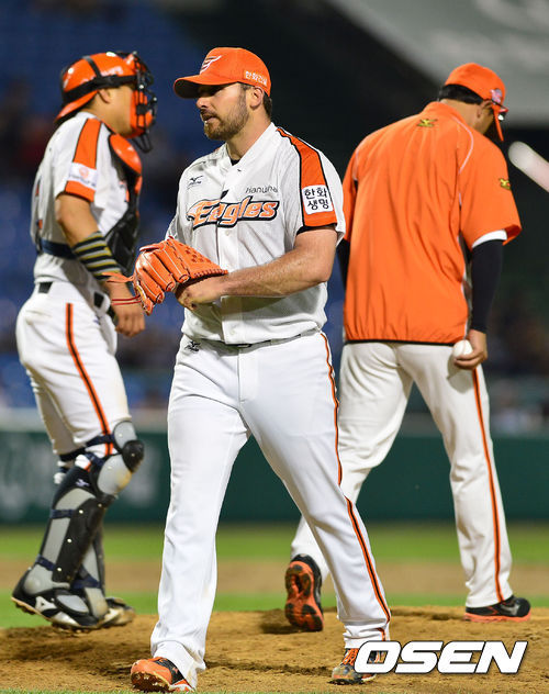 한화 외국인 투수 대나 이브랜드(30)는 지난 23일 대전 롯데전에서 보기 드문 장면을 연출했다. 팀이 2-4로 뒤져있는 7회초 1사 3루 위기. 이브랜드의 투구수는 104개였고, 한화 정민철 투수코치가 마운드를 향했다. 외야 우측 불펜에서는 불펜카가 그라운드로 진입하고 있었다.