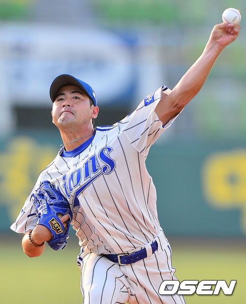 24일 오후 대구시민구장에서 열린 2013 한국야쿠르트 세븐프로야구 삼성 라이온즈와 NC 다이노스의 경기, 삼성 선발 장원삼이 힘차게 공을 뿌리고 있다.