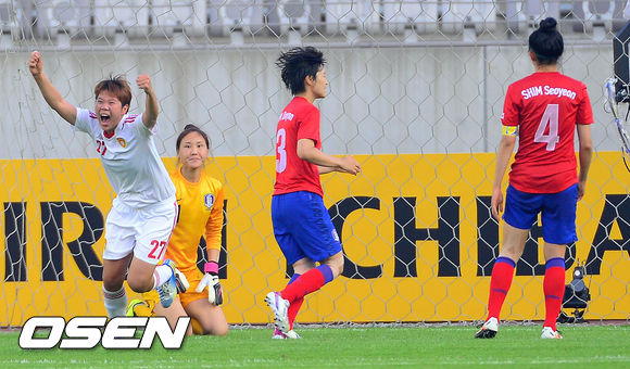 24일 오후 경기도 화성종합경기타운에서 열린 2013 동아시안컵 축구선수권대회 여자부 2차전 한국과 중국의 경기, 후반 중국 리잉이 추가골을 넣고 있다