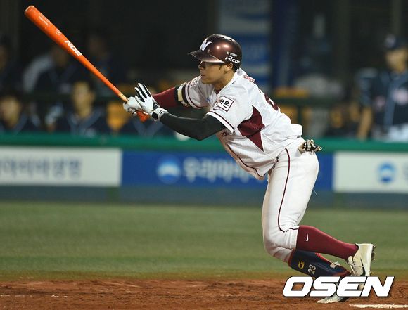 24일 오후 서울 목동야구장에서 '2013 한국야쿠르트 세븐 프로야구' 넥센 히어로즈 대 두산 베어스의 경기가 열렸다. 4회말 넥센 공격 2사 주자없는 상황 1번타자 문우람이 중전안타를 날리고 있다.
