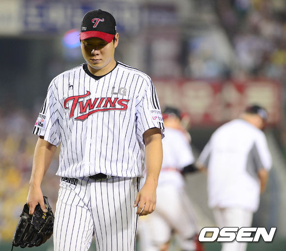 24일 오후 서울 잠실구장에서 열린 '2013 한국야쿠르트 세븐 프로야구' LG 트윈스와 KIA 타이거즈의 경기 4회초 1사 1,3루 신종길에게 1타점 적시타를 내준 류제국이 마운드를 내려가고 있다.