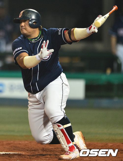 24일 오후 서울 목동야구장에서 '2013 한국야쿠르트 세븐 프로야구' 넥센 히어로즈 대 두산 베어스의 경기가 열렸다. 5회초 두산 공격 무사 1루 상황 4번타자 최준석이 좌익선상 2루타를 날리고 있다.