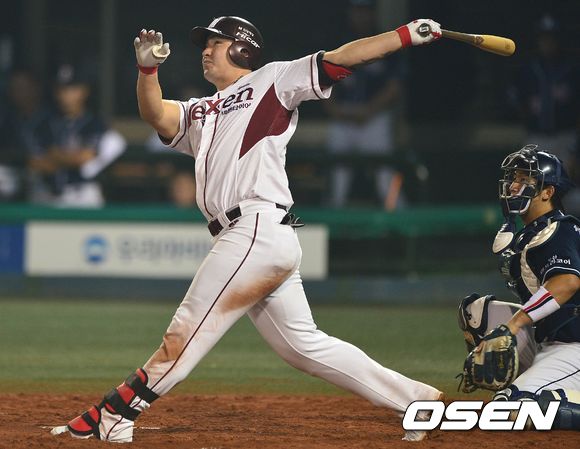 24일 오후 서울 목동야구장에서 '2013 한국야쿠르트 세븐 프로야구' 넥센 히어로즈 대 두산 베어스의 경기가 열렸다. 5회말 넥센 공격 무사 2루 상황 4번타자 박병호가 추격의 좌월 투런포를 날리고 타구를 바라보고 있다. 시즌 20호 홈런.