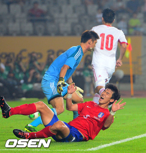 24일 오후 화성종합경기타운에서 열린 2013 동아시안컵 축구선수권대회 남자부 2차전 한국과 중국의 경기 전반 서동현이 골찬스를 놓친 후 아쉬워하고 있다.