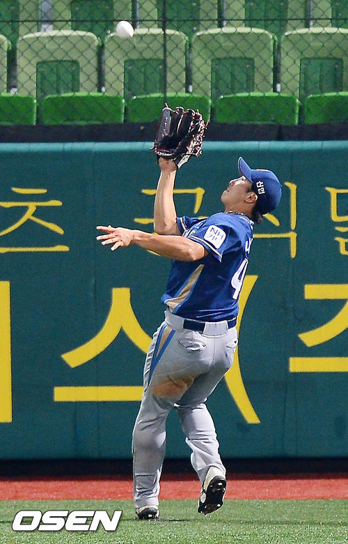 24일 오후 대구시민구장에서 열린 2013 한국야쿠르트 세븐프로야구 삼성 라이온즈와 NC 다이노스의 경기, 10회말 삼성 배영섭의 타구를 NC 중견수 나성범이 달려가며 잡아내고 있다.