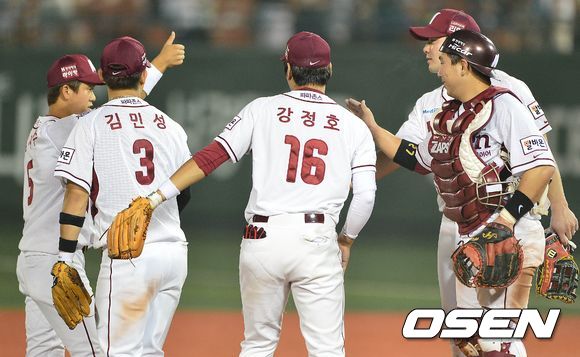 경기 종료 직후 넥센 선수들이 마운드에서 하이파이브를 나누고 있다./dreamer@osen.co.kr