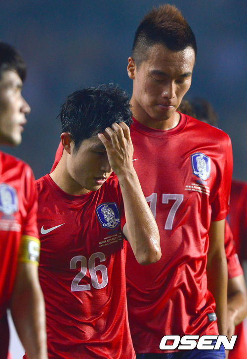 경기종료 후 대표팀 선수들이 아쉬운 표정으로 그라운드를 빠져나가고 있다. / soul1014@osen.co.kr