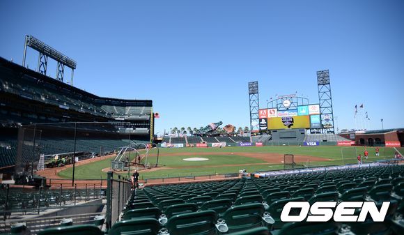 25일(한국시간) 미국 캘리포니아주 샌프란시스코에서 열린 2013 메이저리그 샌프란시스코 자이언츠와 신시내티 레즈의 경기, 샌프란시스코의 홈구장인 AT&T 파크에서 선수단과 구장 관계자들이 경기를 준비하고 있다.