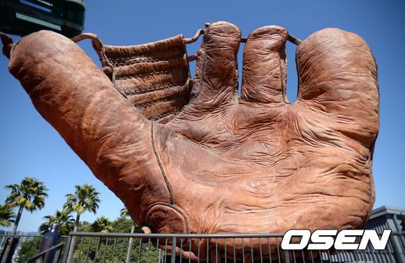 25일(한국시간) 미국 캘리포니아주 샌프란시스코에서 열린 2013 메이저리그 샌프란시스코 자이언츠와 신시내티 레즈의 경기, 샌프란시스코의 홈구장인 AT&T 파크의 외야석 뒤쪽에 대형 글러브 구조물이 세워져 있다.