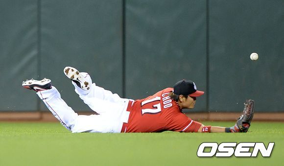 그렇다면 수비는 어떨까. 추신수의 강한 어깨는 메이저리그에서도 최상급이다. 2010년 14개의 외야 보살을 기록하며 이 부문 1위를 기록했고, 이후로는 추신수의 강한 어깨가 알려지며 주자들의 추가진루가 줄어들어 보살을 잡을 기회가 줄었을 정도다. 전통적인 수비 스탯인 수비율도 올해 9할9푼1리, 중견수로 나서며 우려도 샀지만 실책 2개로 나쁘지 않다.