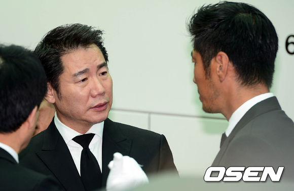 25일 오전 서울 송파구 풍납동 서울아산병원 장례식장에서 故 김종학PD의 발인식이 진행된 가운데 박상원과 윤태영이 이야기를 나누고 있다.