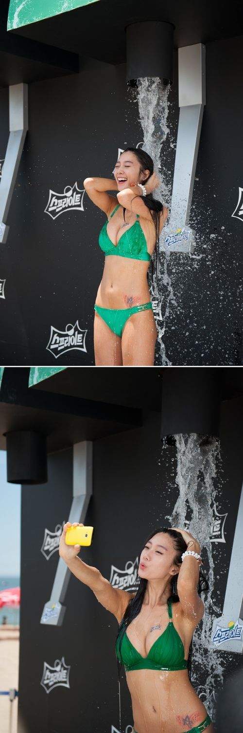날씬한 몸매와 넘치는 건강미로 최고의 주가를 올리고 있는 탤런트 ‘클라라’가 상쾌한 스프라이트 샤워로 해운대를 흔들었다.