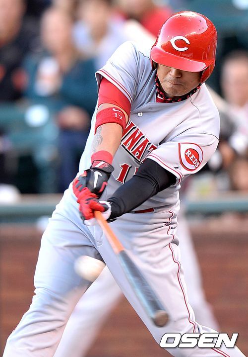 25일(한국시간) 미국 캘리포니아주 샌프란시스코에서 열린 2013 메이저리그 샌프란시스코 자이언츠와 신시내티 레즈의 경기, 1회초 무사에서 신시내티 추신수가 좌전 2루타를 치고 있다.