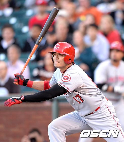 25일(한국시간) 미국 캘리포니아주 샌프란시스코에서 열린 2013 메이저리그 샌프란시스코 자이언츠와 신시내티 레즈의 경기, 1회초 무사에서 신시내티 추신수가 좌전 2루타를 치고 있다.