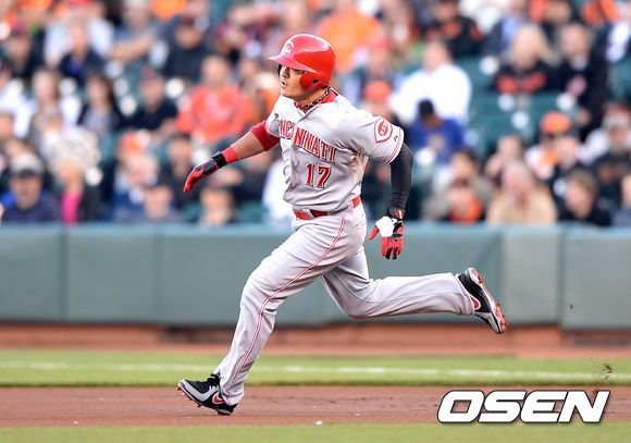 25일(한국시간) 미국 캘리포니아주 샌프란시스코에서 열린 2013 메이저리그 샌프란시스코 자이언츠와 신시내티 레즈의 경기, 1회초 무사에서 신시내티 추신수가 좌전 2루타를 치고 그라운드를 달리고 있다.