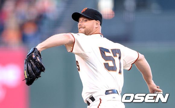 25일(한국시간) 미국 캘리포니아주 샌프란시스코에서 열린 2013 메이저리그 샌프란시스코 자이언츠와 신시내티 레즈의 경기, 2회초 샌프란시스코 선발투수 채드 고딘이 힘차게 공을 던지고 있다.