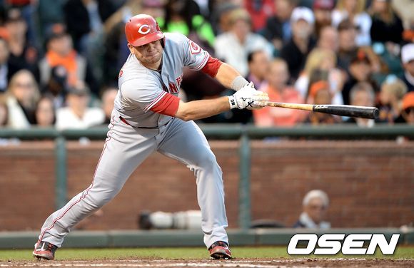 25일(한국시간) 미국 캘리포니아주 샌프란시스코에서 열린 2013 메이저리그 샌프란시스코 자이언츠와 신시내티 레즈의 경기, 3회초 2사 1,2루에서 신시내티 메소라코가 중전 적시타를 치고 있다.