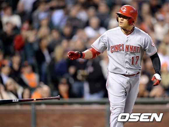 25일(한국시간) 미국 캘리포니아주 샌프란시스코에서 열린 2013 메이저리그 샌프란시스코 자이언츠와 신시내티 레즈의 경기, 4회초 무사에서 신시내티 추신수가 볼넷으로 출루하고 있다.