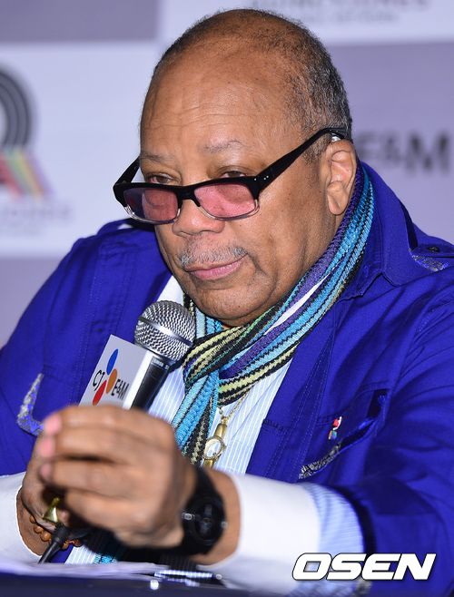 '팝의 거장' 퀸시 존스가 25일 오후 서울 삼성동 인터콘티넨탈 서울 코엑스에서 열린 내한 기자간담회 및 'CJ E&M과의 글로벌 뮤직 파트너십 MOU 체결식'에 인사말을 하고 있다.